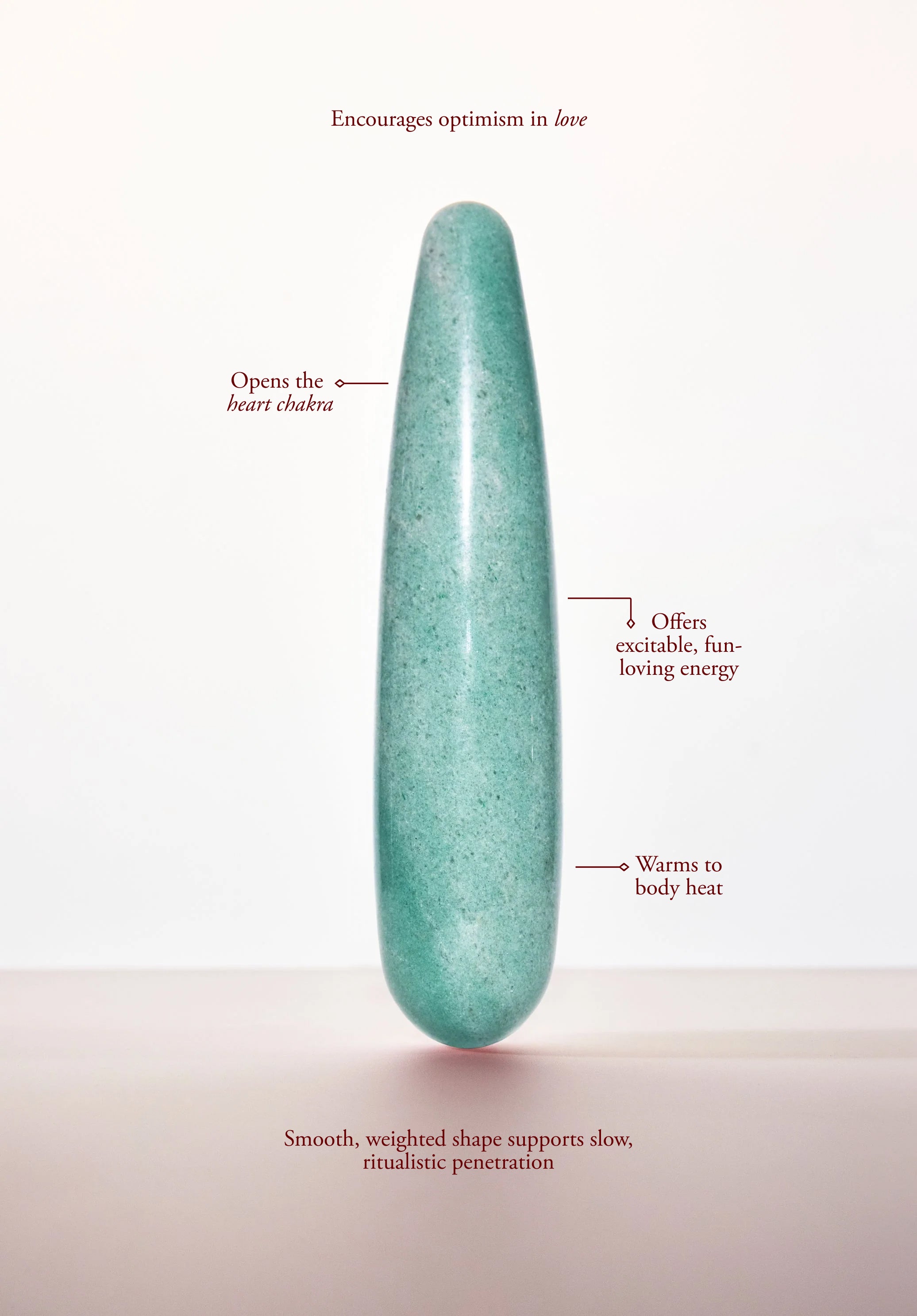 The Indian Jade Original is made from pure green aventurine, which is thought to be the luckiest of all crystals. This precious stone instills a sense of optimism and zest for life, allowing one to move forward with confidence and embrace change. Its gentle green color resonates with the heart chakra and it can be used for harmonizing the emotional body and attracting love. It enhances creativity and motivation, encouraging perseverance in maneuvering through life’s obstacles. Green aventurine is known for helping to release old patterns, habits, and behaviors so that new growth can take place.